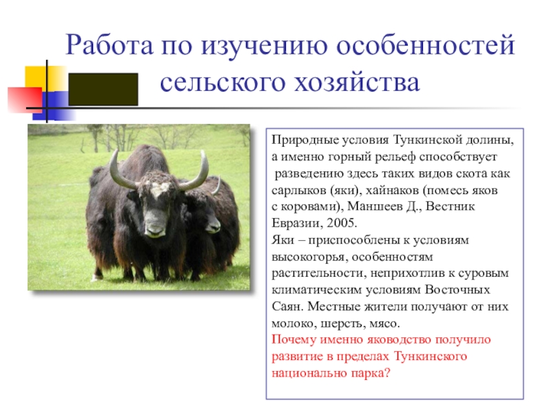 Почему именно яководство получило развитие в пределах Тункинского национально парка?