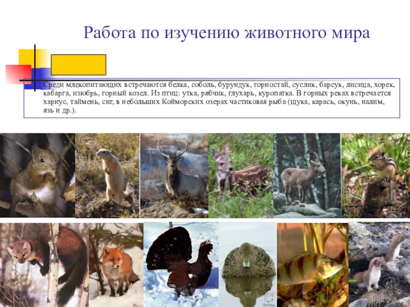 Слайд 16Работа по изучению животного мира