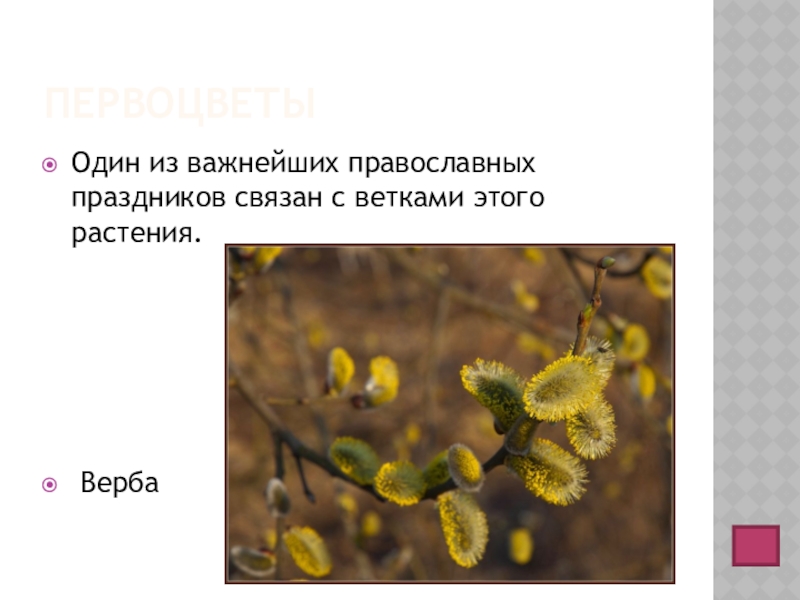 ПЕРВОЦВЕТЫОдин из важнейших православных праздников связан с ветками этого растения. Верба