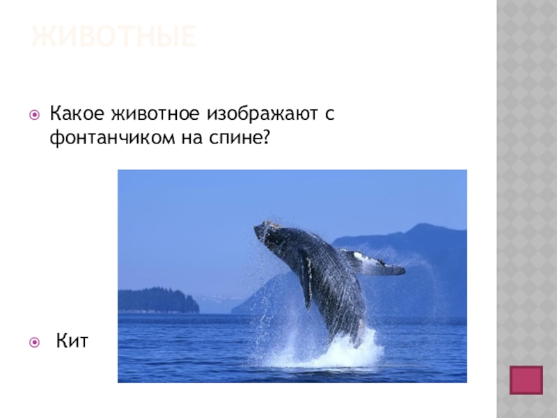 ЖИВОТНЫЕ Какое животное изображают с фонтанчиком на спине? Кит