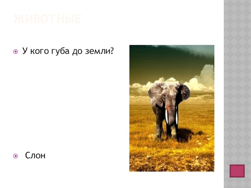 ЖИВОТНЫЕ У кого губа до земли? Слон