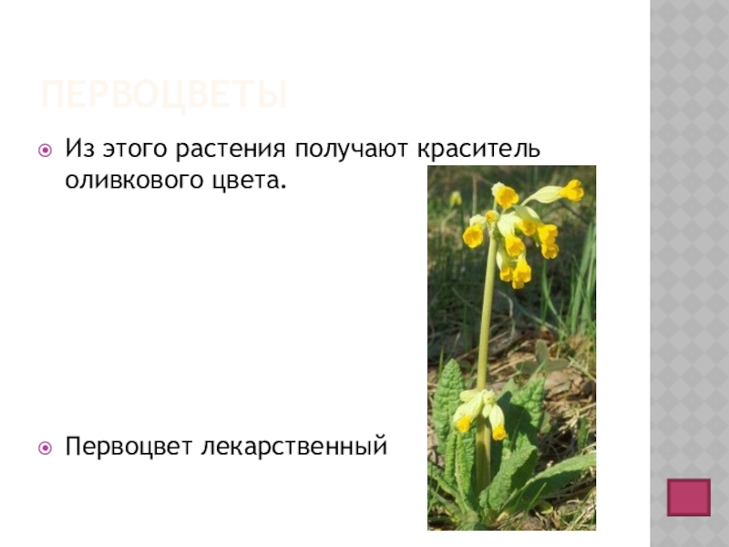 ПЕРВОЦВЕТЫИз этого растения получают краситель оливкового цвета. Первоцвет лекарственный