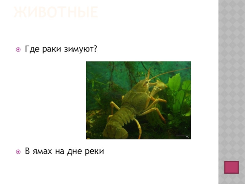 ЖИВОТНЫЕ Где раки зимуют?В ямах на дне реки