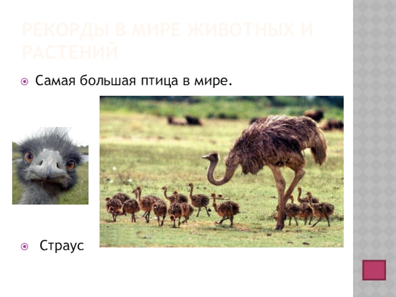 РЕКОРДЫ В МИРЕ ЖИВОТНЫХ И РАСТЕНИЙСамая большая птица в мире. Страус