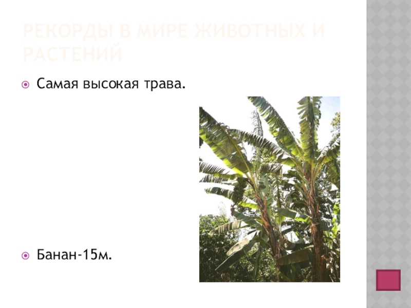 РЕКОРДЫ В МИРЕ ЖИВОТНЫХ И РАСТЕНИЙСамая высокая трава. Банан-15м.