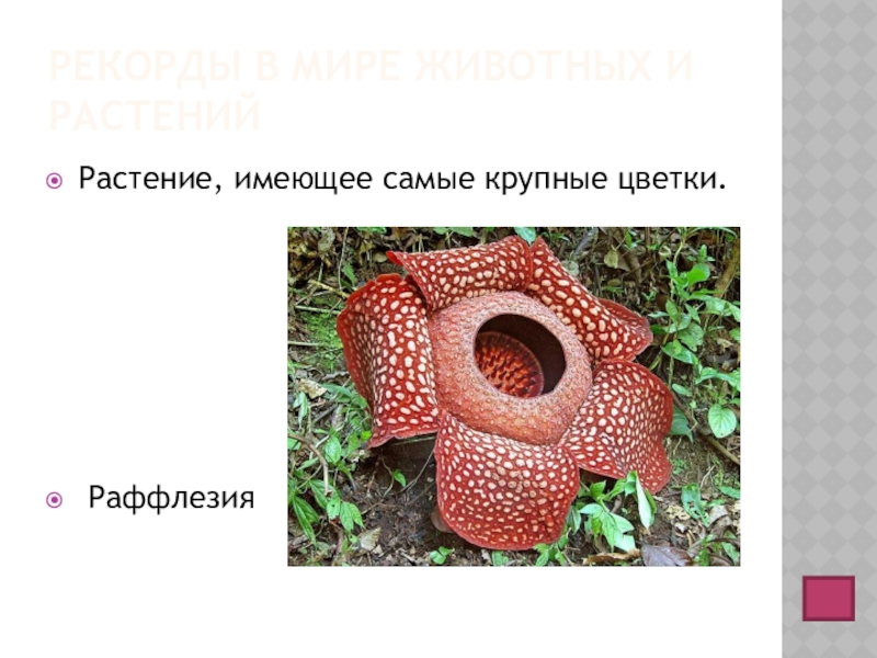 РЕКОРДЫ В МИРЕ ЖИВОТНЫХ И РАСТЕНИЙРастение, имеющее самые крупные цветки. Раффлезия