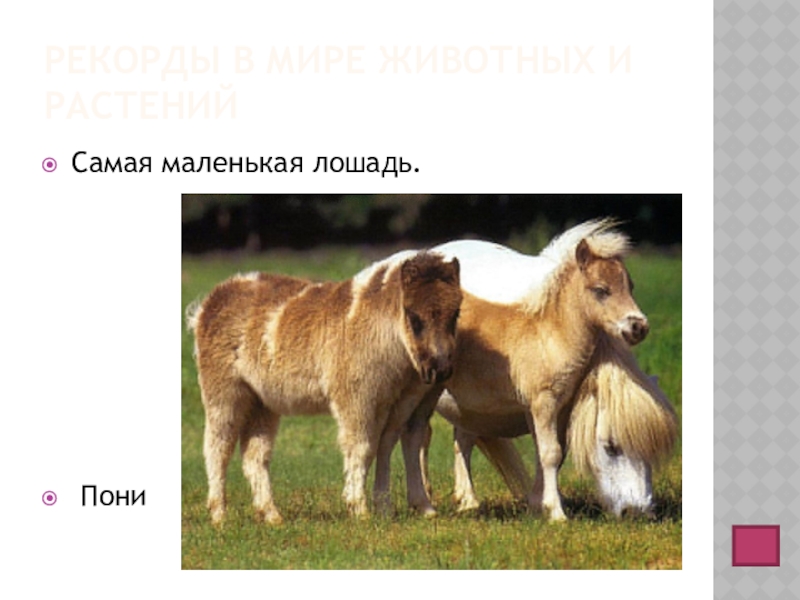 РЕКОРДЫ В МИРЕ ЖИВОТНЫХ И РАСТЕНИЙСамая маленькая лошадь. Пони