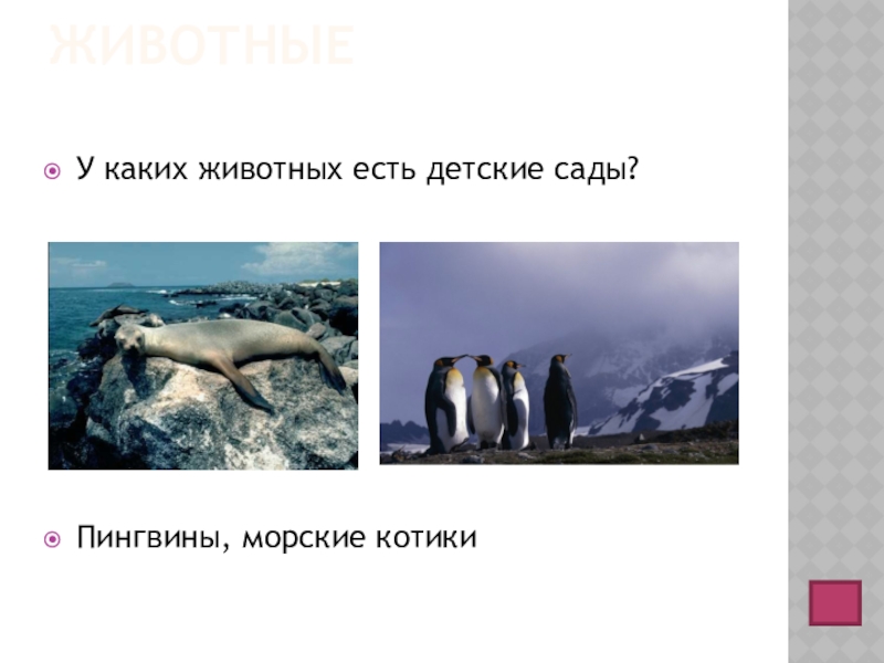 ЖИВОТНЫЕ У каких животных есть детские сады? Пингвины, морские котики