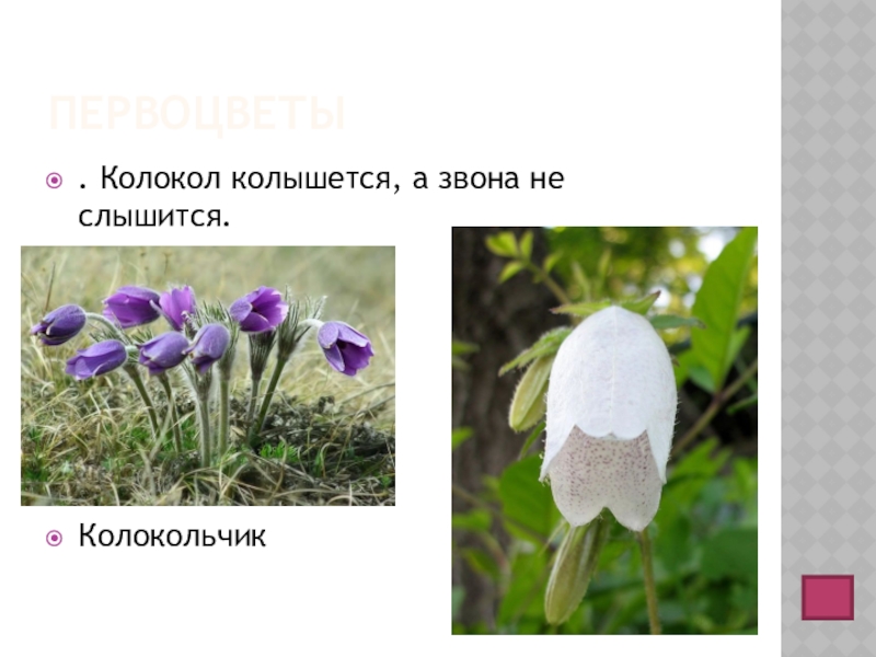 ПЕРВОЦВЕТЫ. Колокол колышется, а звона не слышится. Колокольчик