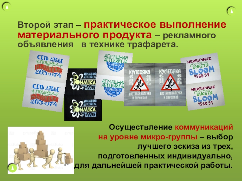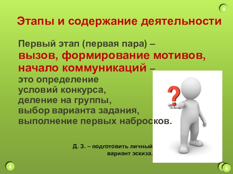 на уровне микро-группы – выбор лучшего эскиза из трех,