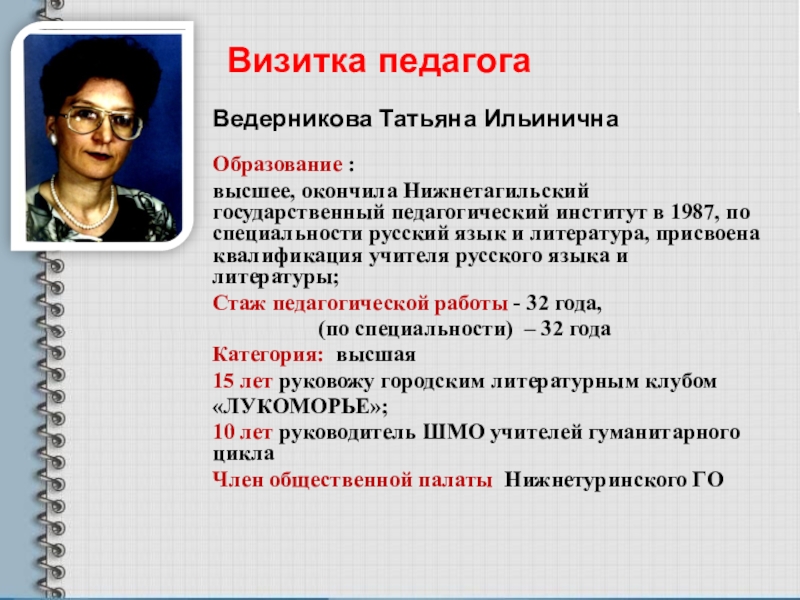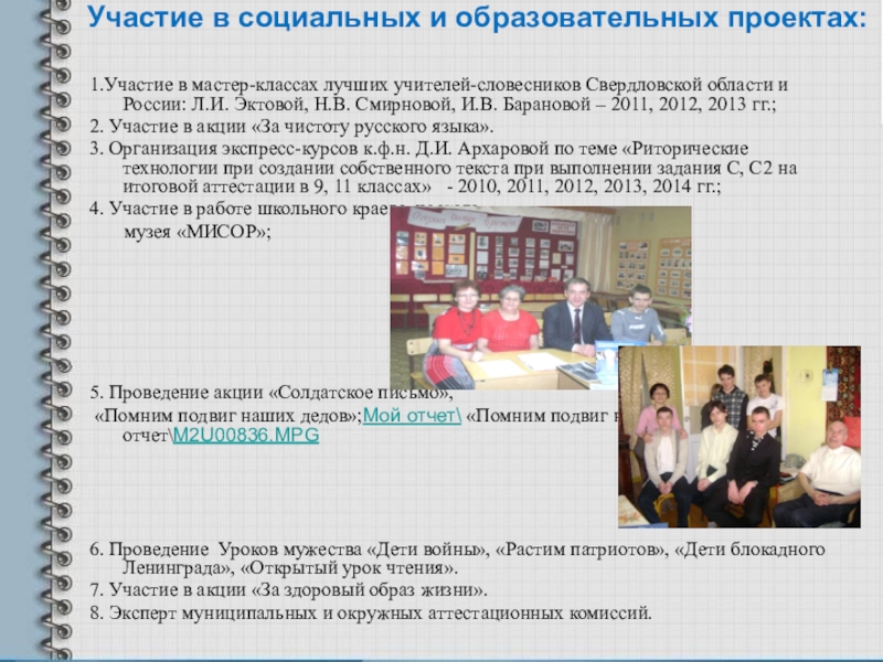 8. Эксперт муниципальных и окружных аттестационных комиссий.