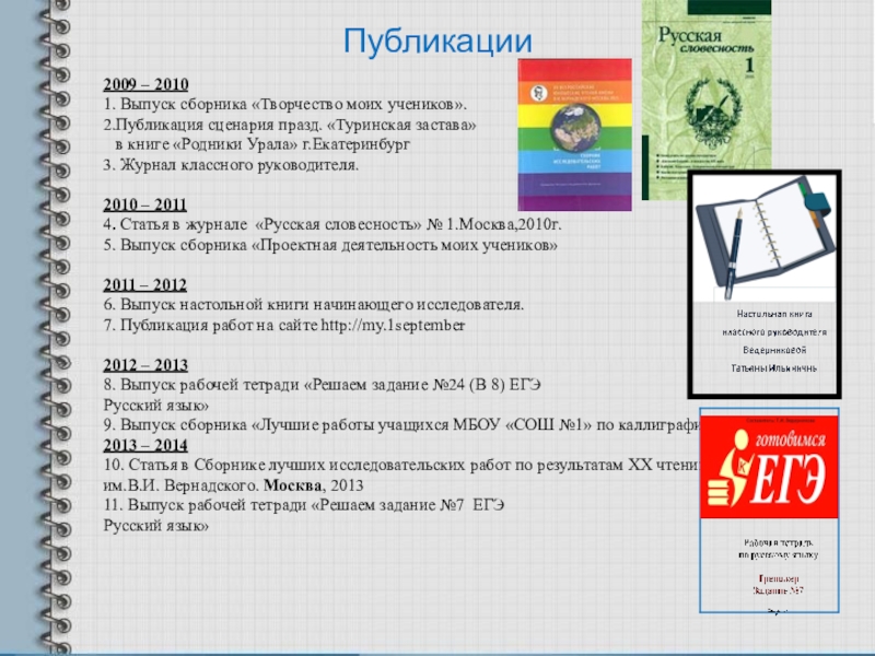 создать педагогический продукт «Сборник презентаций учащихся», тренажеры по подготовке к ОГЭ и ЕГЭ.