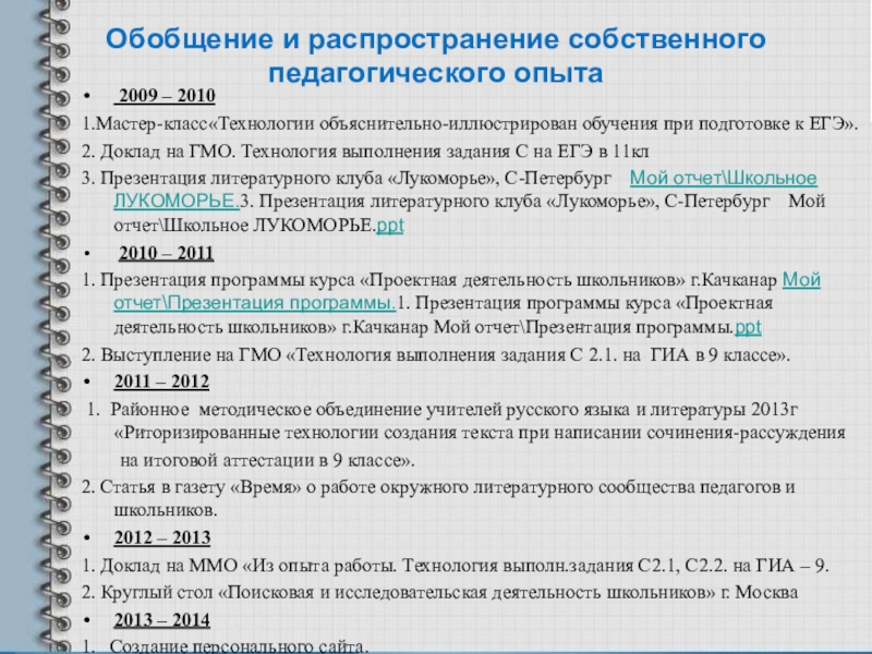 10 лет руководитель ШМО учителей гуманитарного цикла