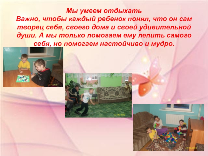 себя, своего дома и своей удивительной души. А мы только помогаем ему лепить самого себя, но помогаем настойчиво и мудро.