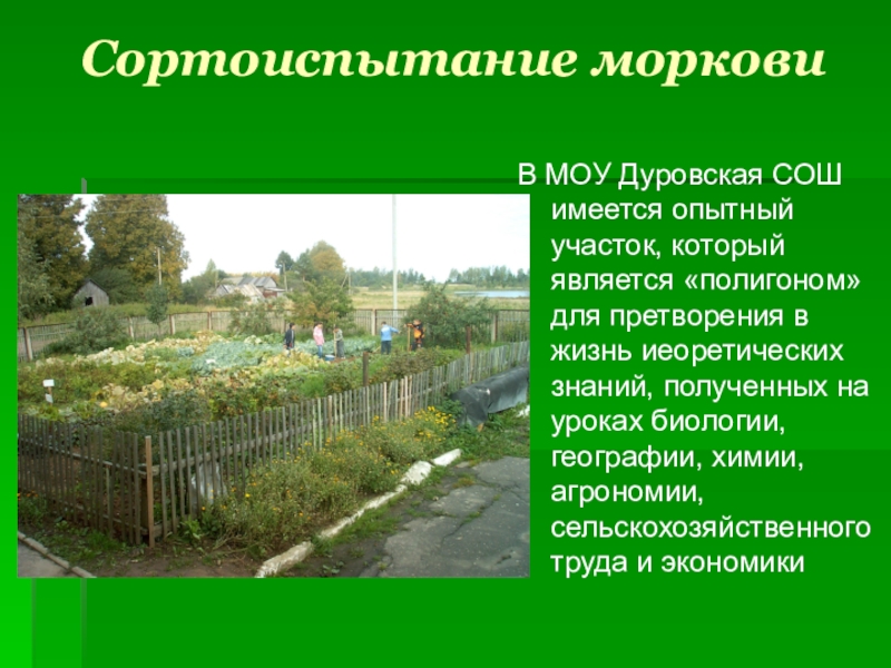 для претворения в жизнь иеоретических знаний, полученных на уроках биологии, географии, химии, агрономии, сельскохозяйственного труда и экономики