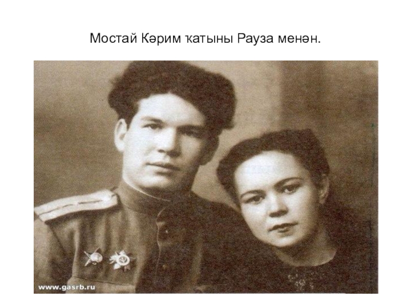 Слайд 3Мостай Кәрим ҡатыны Рауза менән.