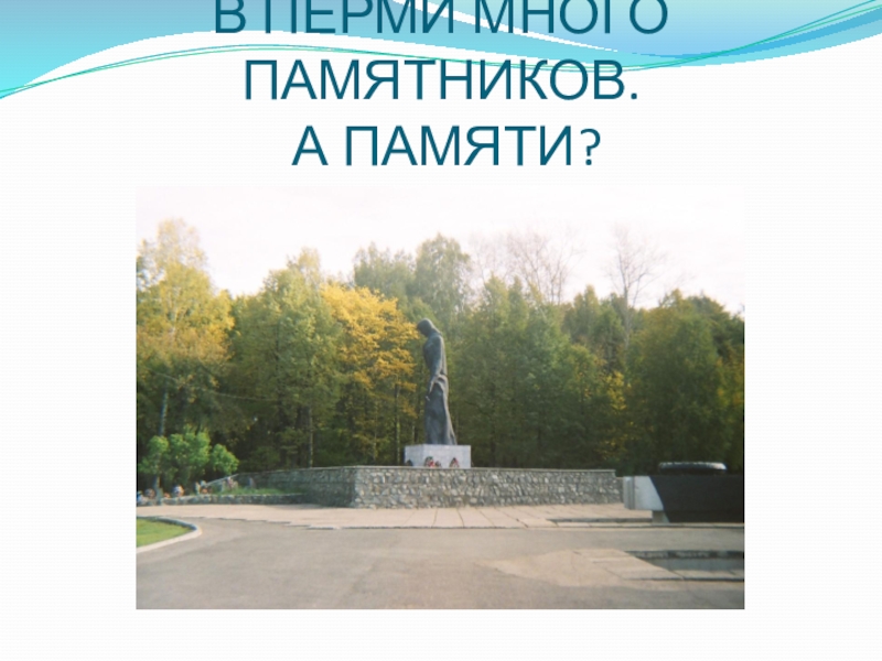 Слайд 4В ПЕРМИ МНОГО ПАМЯТНИКОВ. А ПАМЯТИ?