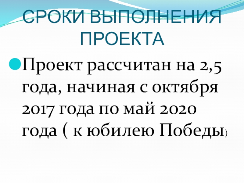 Слайд 8СРОКИ ВЫПОЛНЕНИЯ ПРОЕКТА
