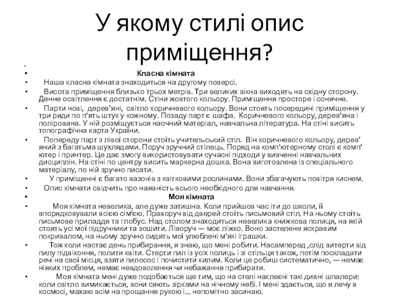 Презентация, доклад на тему Твір-опис приміщення в художньому стилі.Презентація уроку розвитку мовлення