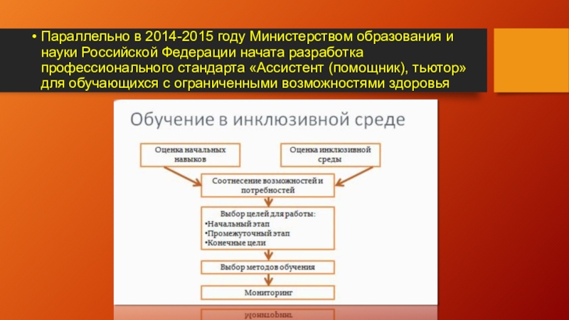 Параллельно в 2014-2015 году Министерством образования и науки Российской Федерации начата разработка профессионального стандарта «Ассистент (помощник), тьютор»