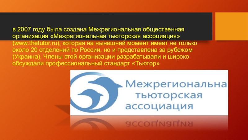 Слайд 5в 2007 году была создана Межрегиональная общественная организация «Межрегиональная тьюторская ассоциация»