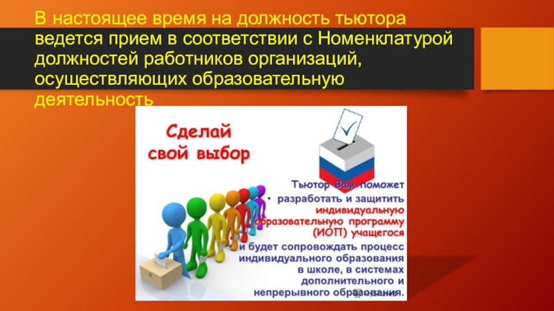 Слайд 8В настоящее время на должность тьютора ведется прием в соответствии с