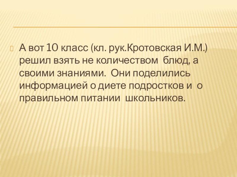 Слайд 48А вот 10 класс (кл. рук.Кротовская И.М.) решил взять не количеством