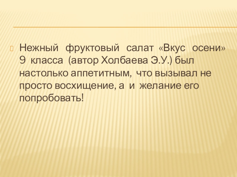 Слайд 30Нежный фруктовый салат «Вкус осени» 9 класса (автор