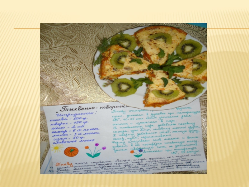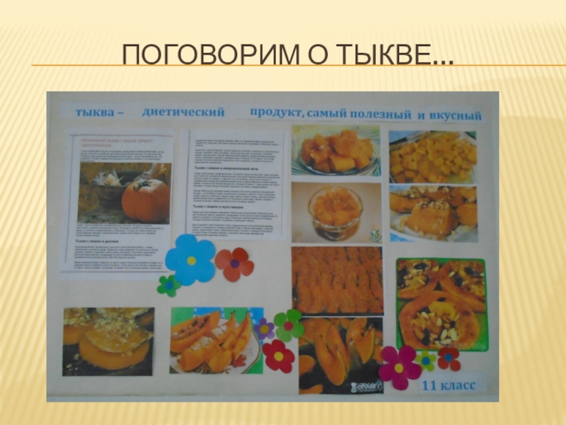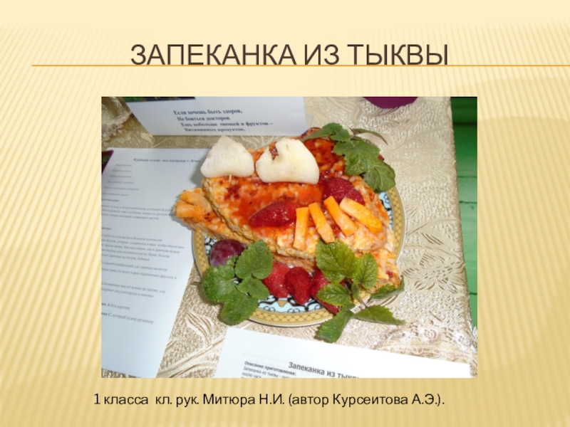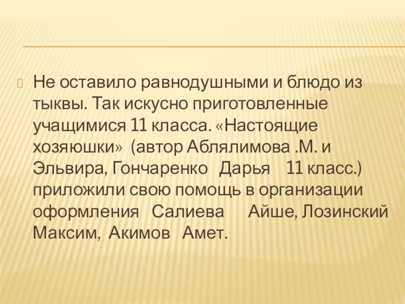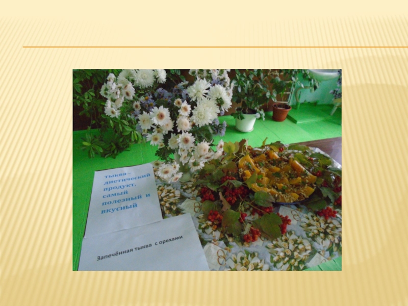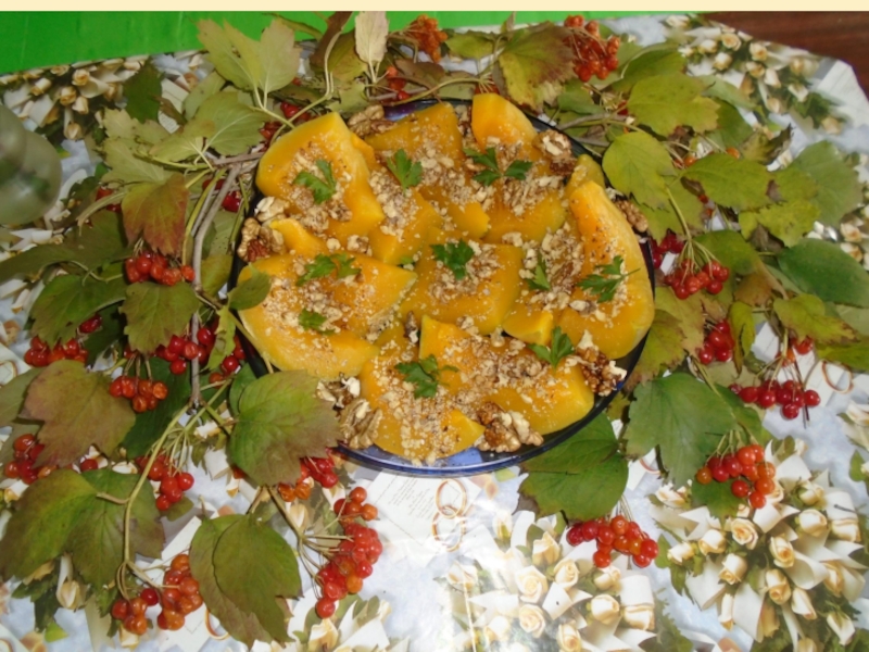 Слайд 27Не оставило равнодушными и блюдо из тыквы. Так искусно приготовленные учащимися