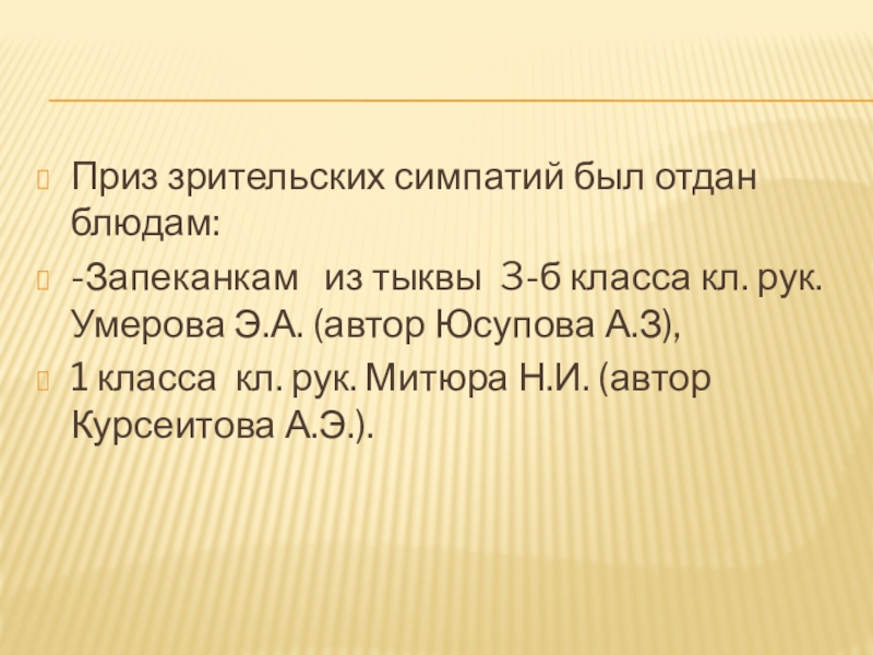 Слайд 54Приз зрительских симпатий был отдан блюдам: