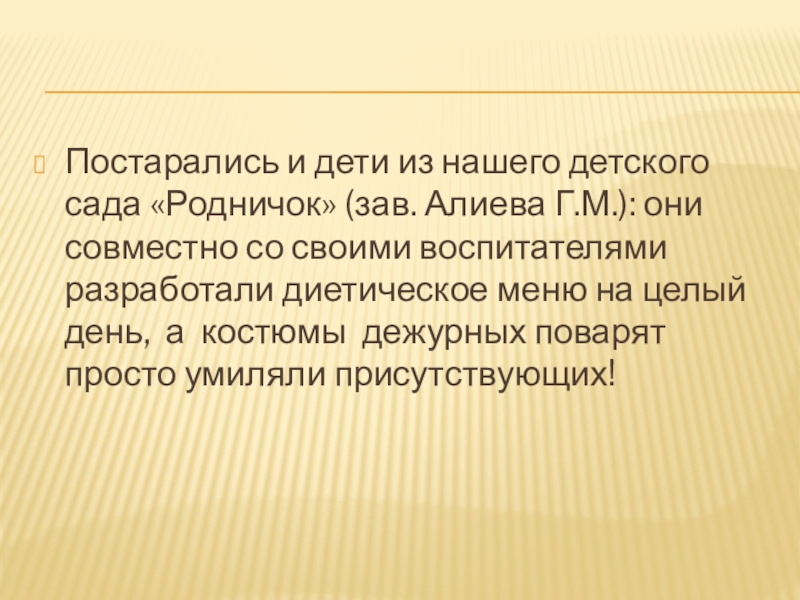 Слайд 16Постарались и дети из нашего детского сада «Родничок» (зав. Алиева Г.М.):