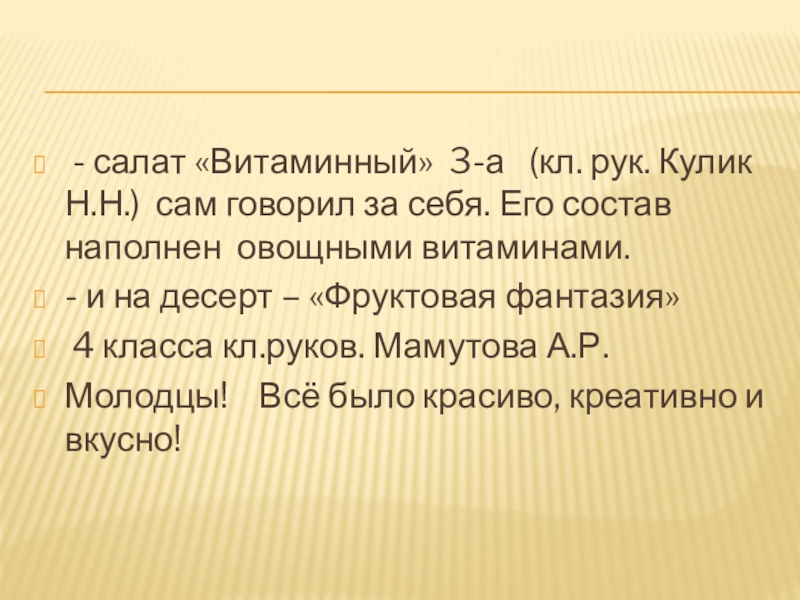 Слайд 60 - салат «Витаминный» 3-а (кл. рук. Кулик Н.Н.) сам
