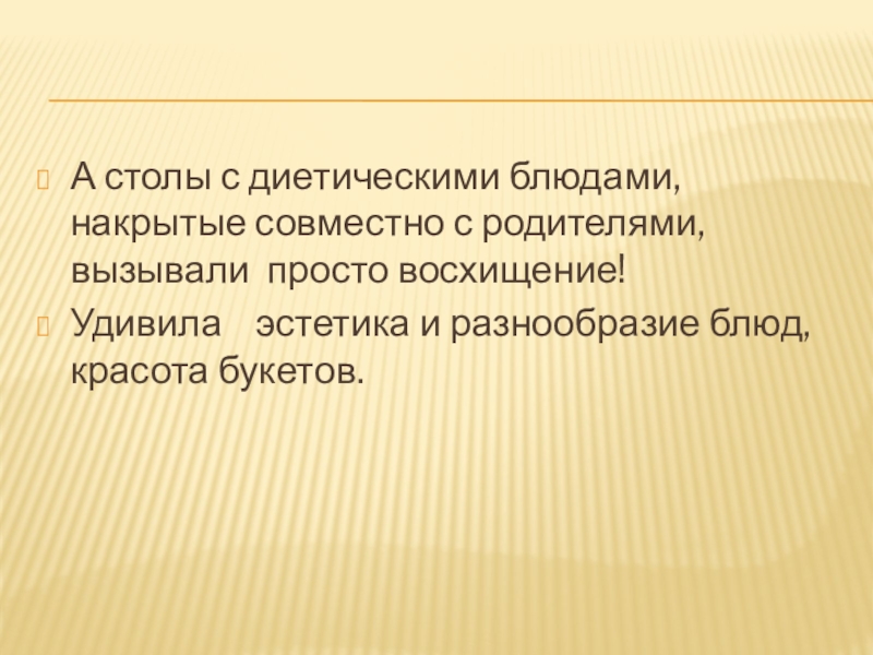 Слайд 9А столы с диетическими блюдами, накрытые совместно с родителями, вызывали просто