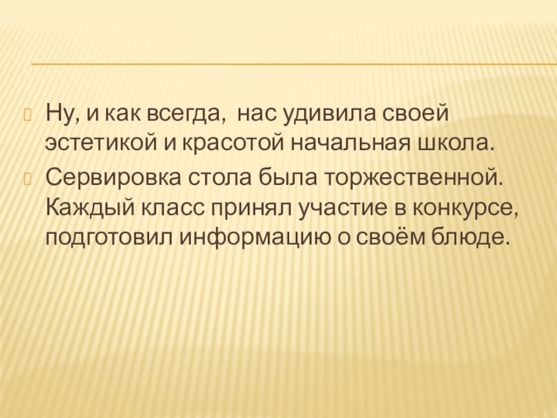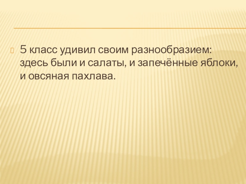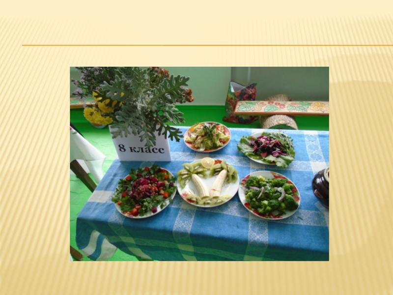 Слайд 425 класс удивил своим разнообразием: здесь были и салаты, и запечённые