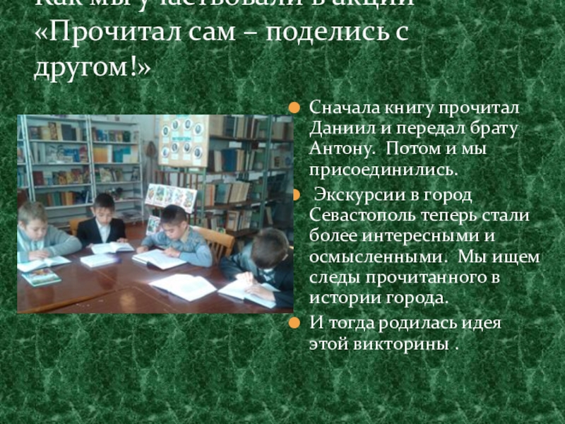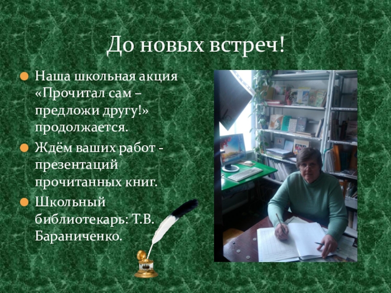 Это сайт презентаций, где можно хранить и обмениваться своими презентациями, докладами, проектами, шаблонами в формате PowerPoint с другими пользователями. Мы помогаем школьникам, студентам, учителям, преподавателям хранить и обмениваться учебными материалами.