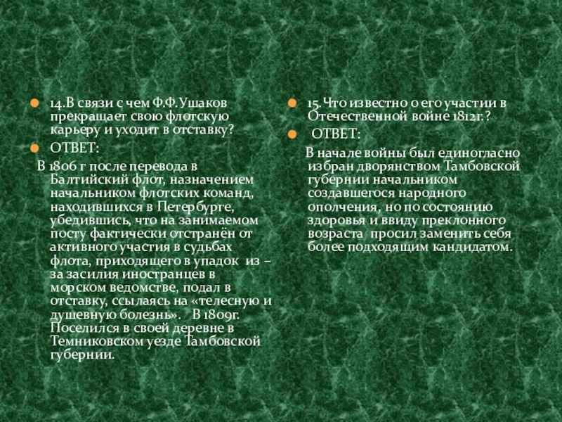 15.Что известно о его участии в Отечественной войне 1812г.?