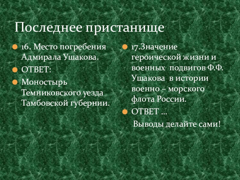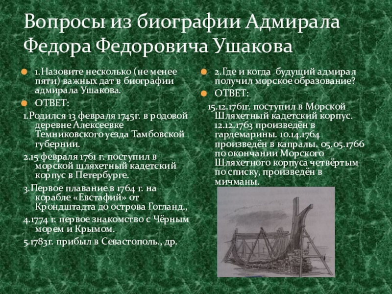 11.Что узнаёт Ф.Ф.Ушаков в разговоре с А.В.Суворовым о его принадлежности к морской братии?