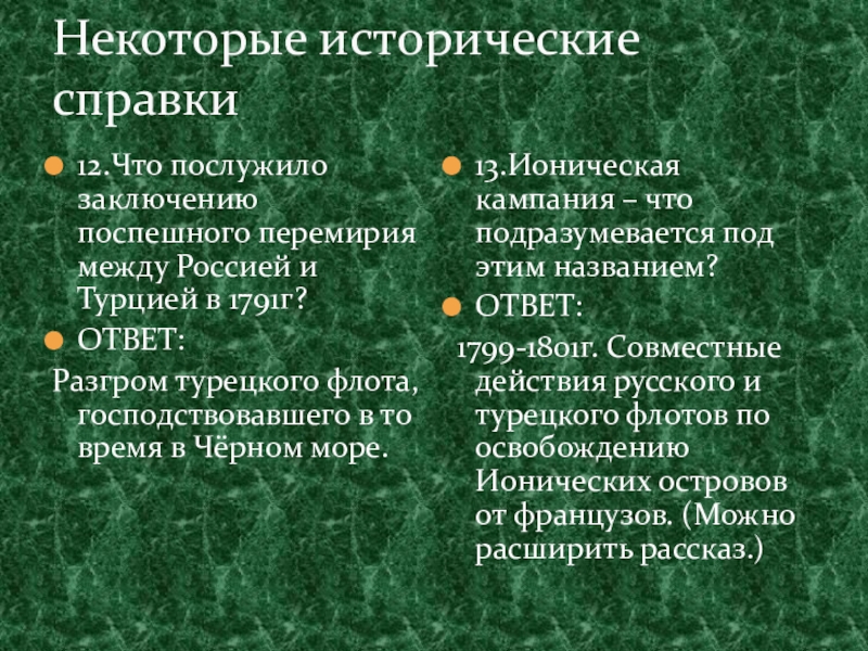 1799-1801г. Совместные действия русского и турецкого флотов по освобождению Ионических островов от французов. (Можно расширить рассказ.)