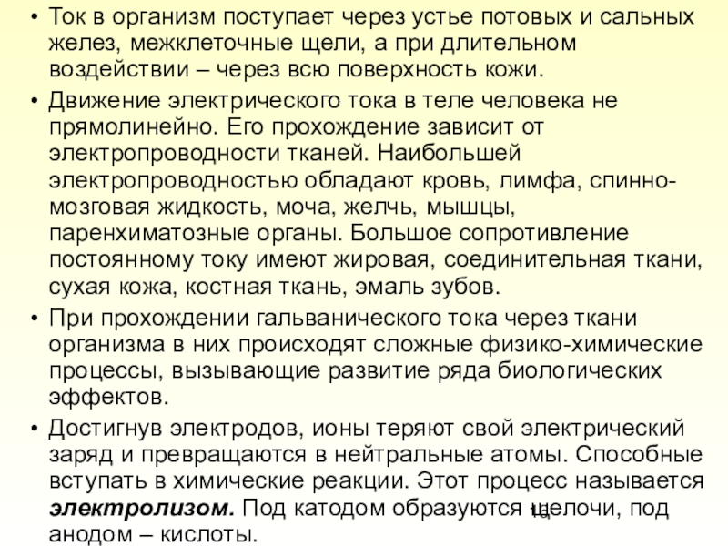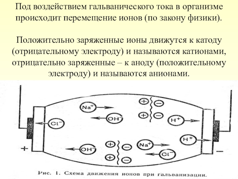 Слайд 15Под воздействием гальванического тока в организме происходит перемещение ионов (по закону
