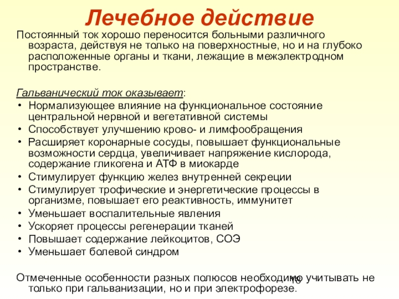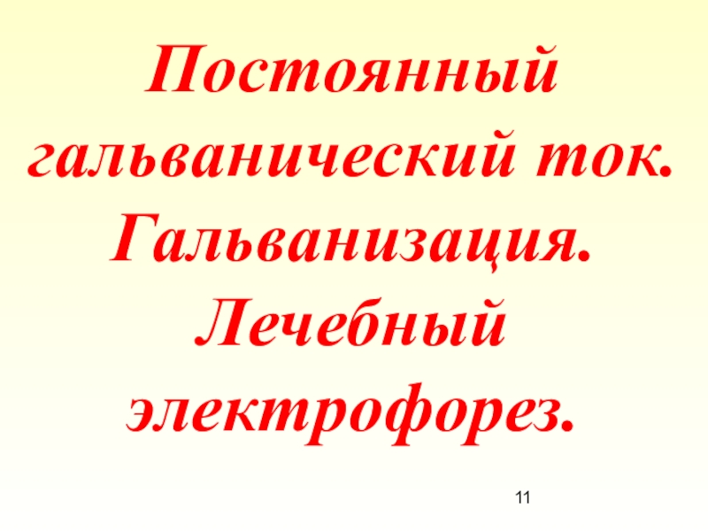 Слайд 11Постоянный гальванический ток. Гальванизация. Лечебный электрофорез.