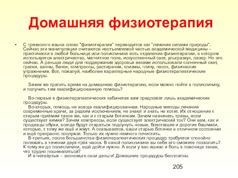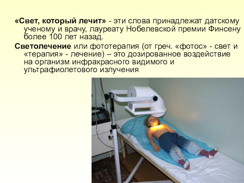 Слайд 4Физиотерапия (от др.-греч. φύσις — природа + θεραπεία — лечение) — специализированная область клинической медицины, изучающая физиологическое и