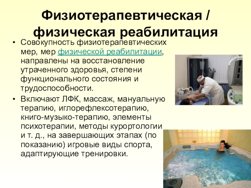 Совокупность физиотерапевтических мер, мер физической реабилитации, направлены на восстановление