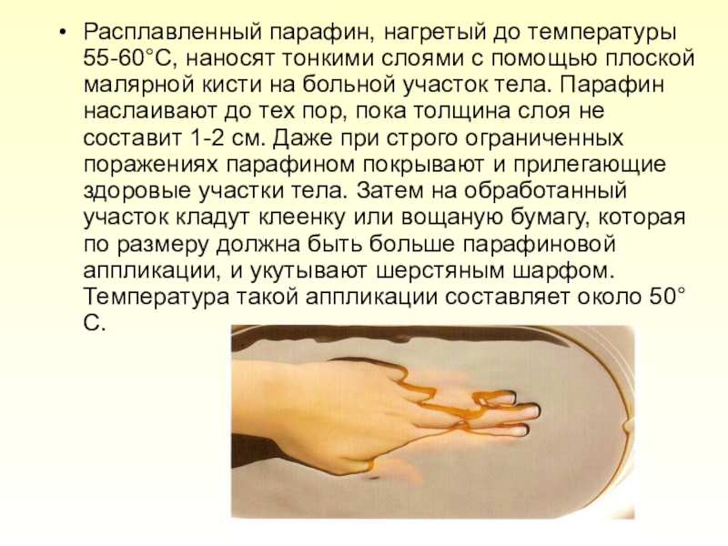 водой с температурой 35-37 градусов. Поместите в этот тазик обе руки. Постепенно, в течении 10 минут, доливанием горячей воды, доведите её температуру до 42-46 градусов и ещё минут 5-10 подержите руки в этом тазике. Подобные манипуляции проводите через день. Курс лечения - 7-10 процедур.