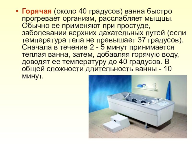 Ежедневно нужно принимать ванну. 1-3 день. Наполните ванну