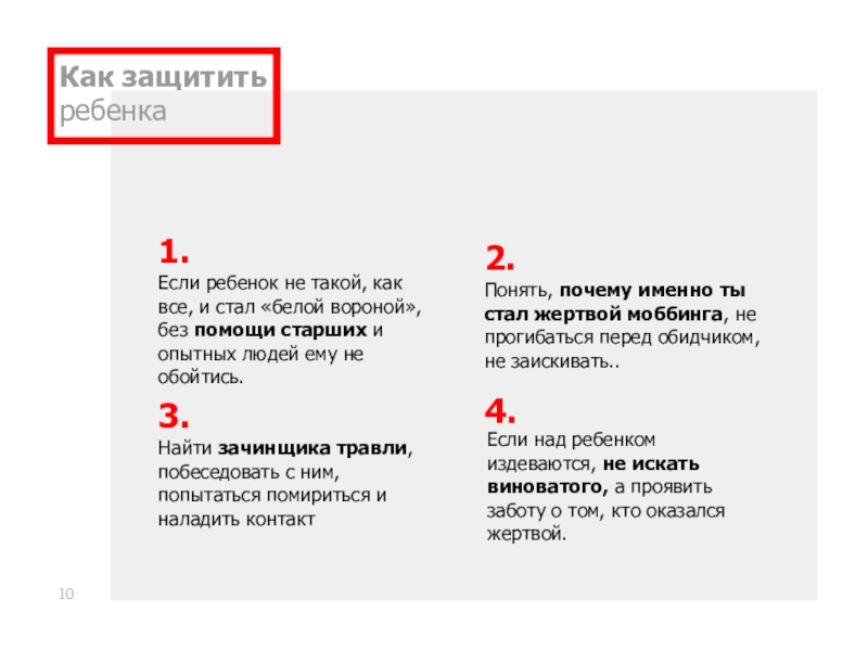 Понять, почему именно ты стал жертвой моббинга, не прогибаться перед обидчиком, не заискивать..