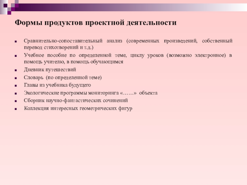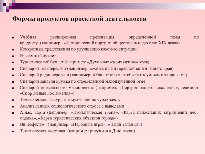 Слайд 24Формы продуктов проектной деятельности