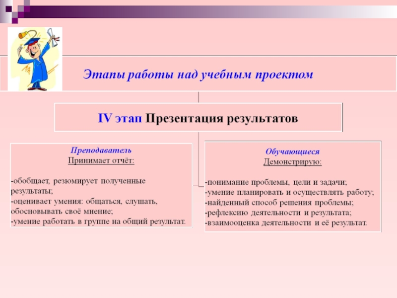 презентации результатов. Это могут быть альманахи, театрализации, спортивные игры, произведения изобразительного или декоративно-прикладного искусства, видеофильмы и т. п.
