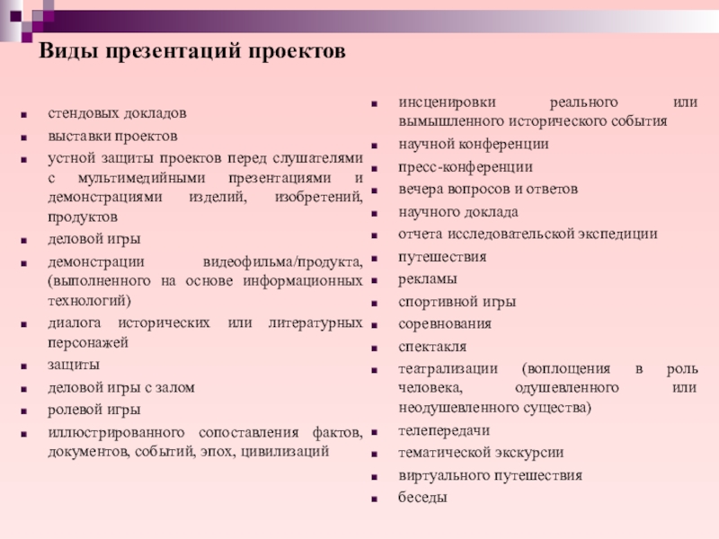 Слайд 25Виды презентаций проектов