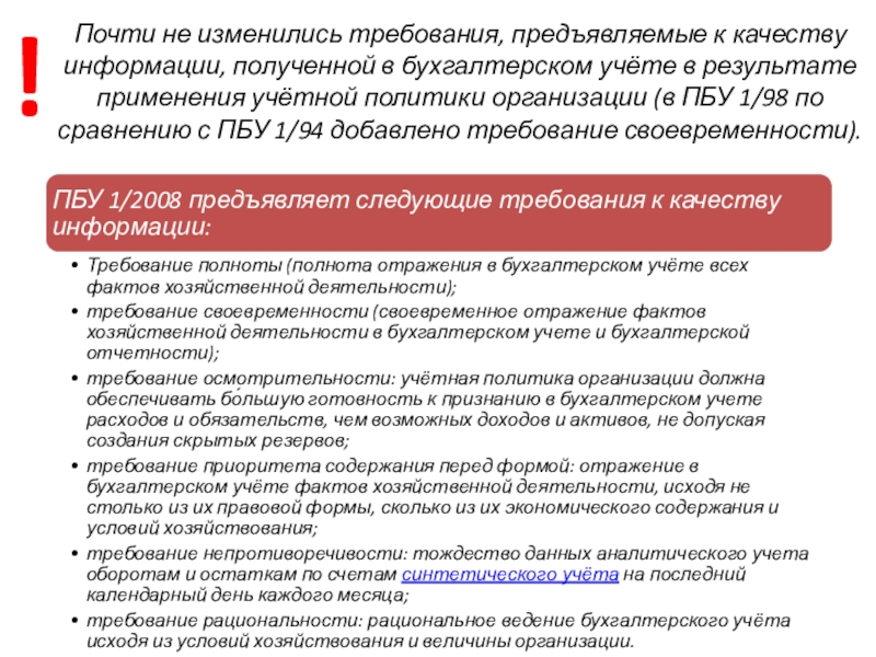 Вследствие реформирования бухгалтерского учета в соответствии с международными стандартами впоследствии указанное Положение было заменено на ПБУ 1/98 (Приказ Минфина России от 09.12.1998 N 60н), а в 2008 г. — на ПБУ 1/2008 «Учётная политика организации»