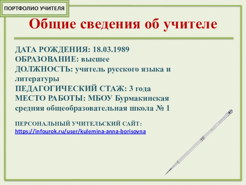 Я – учитель МБОУ Бурмакинской средней общеобразовательной школы